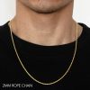 10K 2MM YELLOW GOLD DC HOLLOW ROPE 18″ CHAIN NECKLACE (AVAILABLE IN LENGTHS 7″ – 30″)