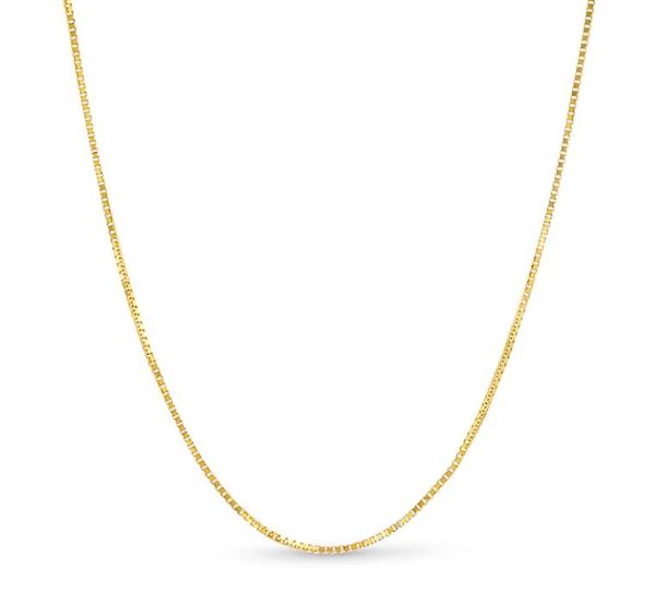 This 10 Karat Yellow Gold Box Chain is a classic chain that is loved worldwide. Made with authentic 10k yellow gold, this chain has cube shaped links that interlock, which makes the chain unique. Comes with various lengths that will match your preference, this chain weighs approximately 0.05 grams per inch and may not be exact.