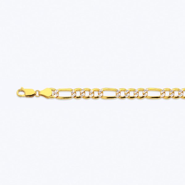 14K 6.5MM YELLOW GOLD HOLLOW PAVE FIGARO 24″ CHAIN NECKLACE (AVAILABLE IN LENGTHS 7″ – 30″)